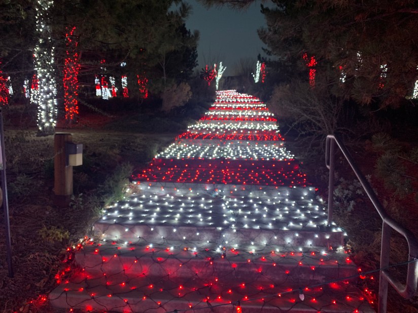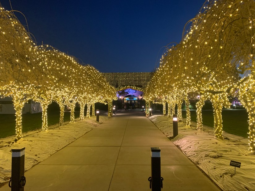 The doors open and somehow I get to be the first person on the path. The trek to the door is beautiful with white lights lining the path as the trees make an arch over the pavement. As the actual excursion begins, you hear Christmas music playing and come through tons of wonderful exhibits — Candy Cane Lane (Later in the Track), Northern Passage, Snowflake Lane, and so so much more!